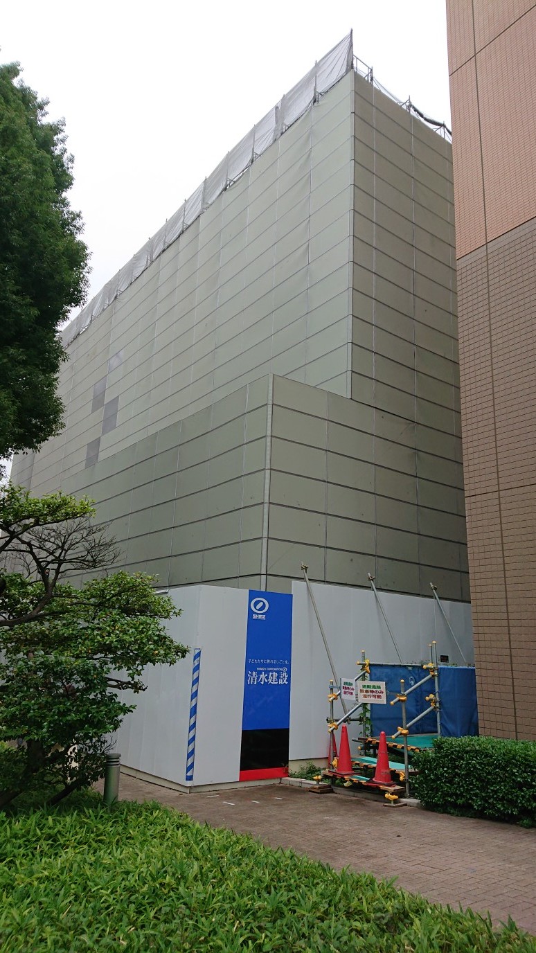 図書館は新棟建設のため解体され、中庭のクスノキは八十年館南に移植されていました。